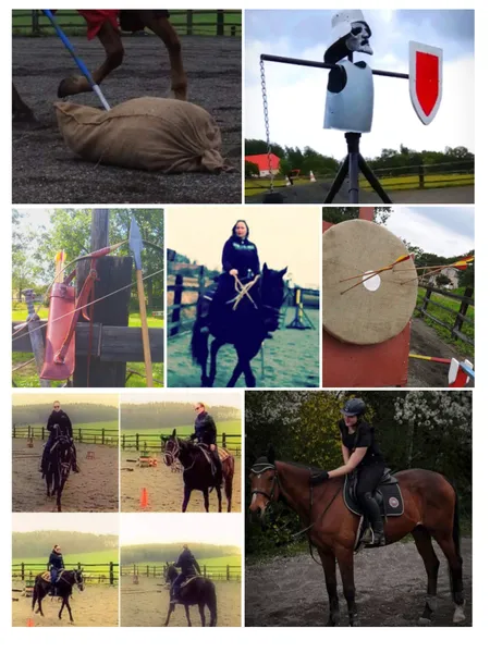 * se zbraní - střelba lukem, práce s kopím, tyčí a mečem z koně za jízdy, …